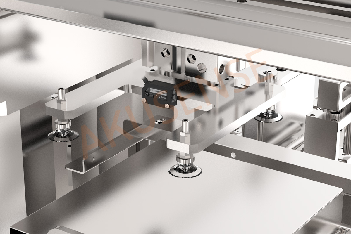 槽型ST-303N-W用于對(duì)取完料的空料盤進(jìn)行下料移動(dòng)到位檢測(cè),芯片一體化設(shè)計(jì),使得明治的槽型傳感器展現(xiàn)出更優(yōu)越的機(jī)械性能,重復(fù)精度達(dá)到0.01mm。