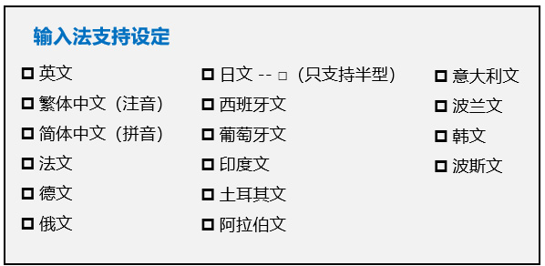 軟件功能 | 多語輸入 | ||||