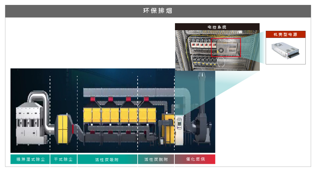 企業(yè)于生產(chǎn)過程中產(chǎn)生的廢氣恐對大環(huán)境造成沖擊影響,MEANWELL 重視環(huán)境議題,規(guī)劃蘇州新園區(qū)導入先進的環(huán)保排煙系統(tǒng)(RCO),主要功能采自動開關(guān)控制,遠程監(jiān)控其運作正常,所排出氣體對環(huán)境的沖擊降到最低。解決方案推薦