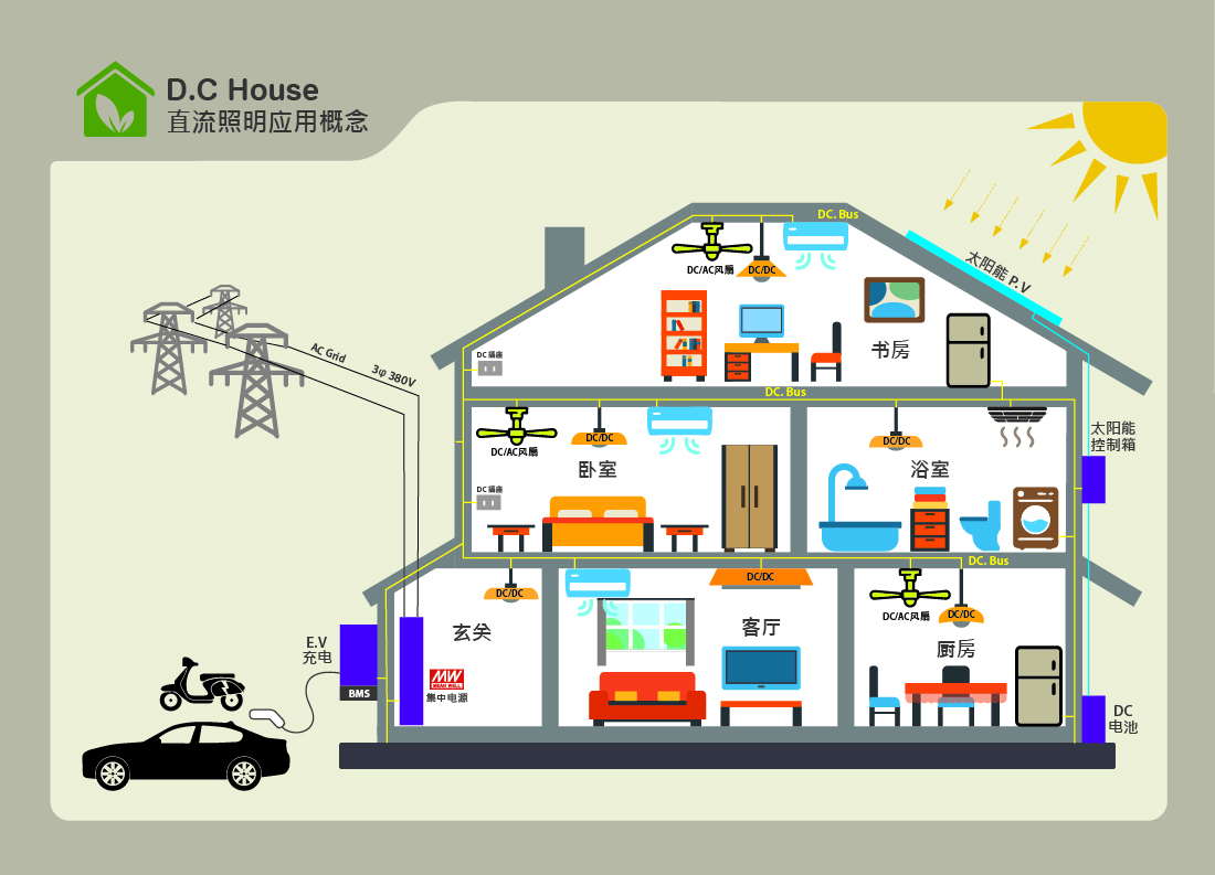 由于再生能源已是未來(lái)發(fā)展趨勢(shì),因此DC House不再只是一個(gè)概念,而是必要的基礎(chǔ)設(shè)施。因此,如何提高電力轉(zhuǎn)換效能在交流電轉(zhuǎn)換直流電,或直流電轉(zhuǎn)換交流電都是不可忽視的議題。明緯將以此為出發(fā)點(diǎn),引領(lǐng)成為直流供電室內(nèi)應(yīng)用先驅(qū),定義新的直流集中供電照明應(yīng)用方式,以達(dá)到降低功率轉(zhuǎn)換過程的損失。