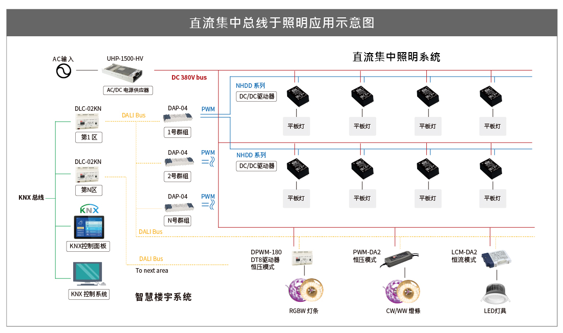 憑借超過35年的電源設(shè)計(jì)和制造經(jīng)驗(yàn),我們定義新的直流集中供電和直流照明應(yīng)用方式,可提供機(jī)殼型與DC/DC LED驅(qū)動(dòng)器的完整解決方案。此外,直流集中供電可輕松整合到再生能源系統(tǒng)中,以降低電源轉(zhuǎn)換損失及結(jié)合儲(chǔ)能系統(tǒng)(ESS)的使用方式。如此才能達(dá)到一個(gè)完整的“直流世界”應(yīng)用,請(qǐng)參考下圖。