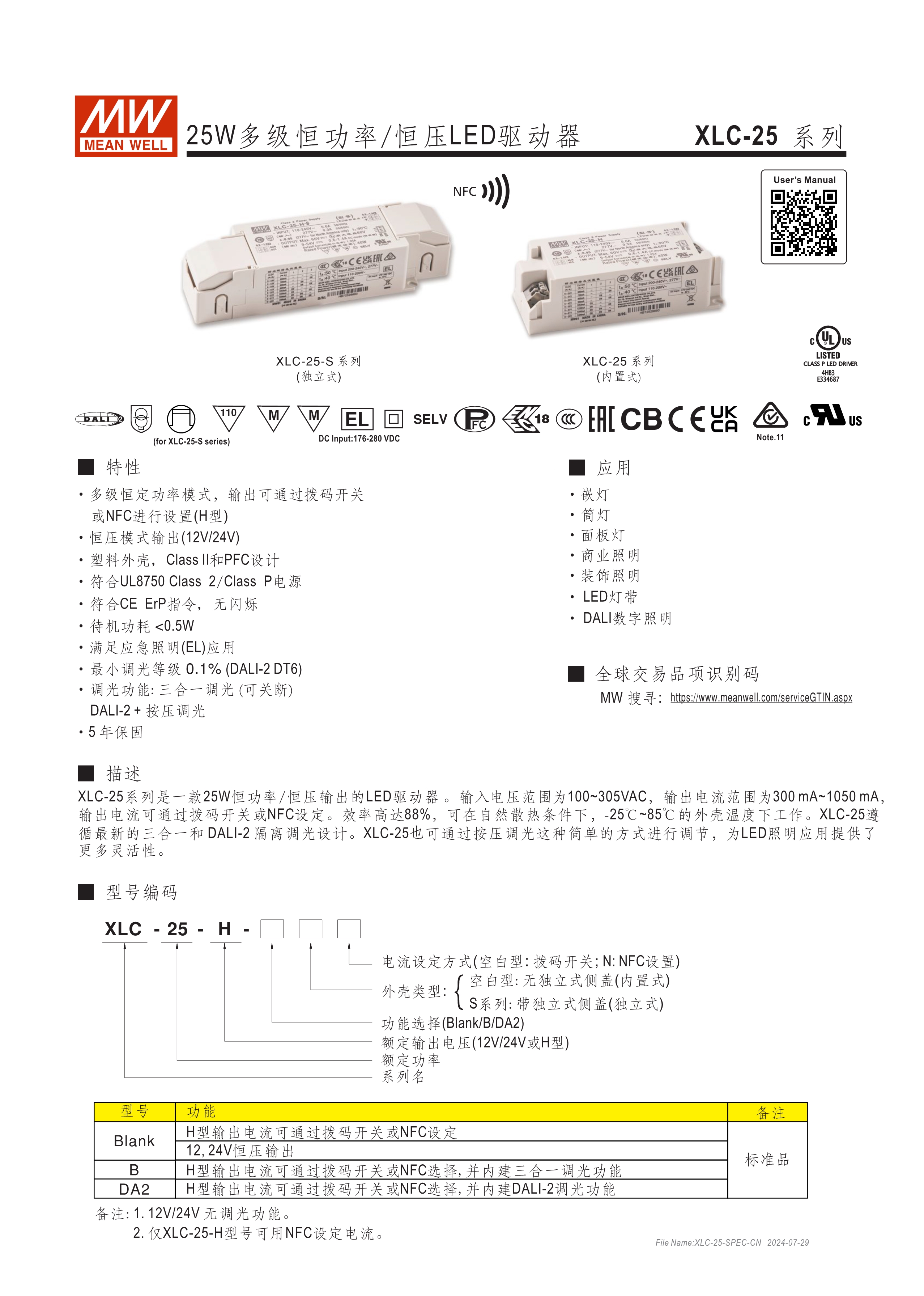 恒功率設(shè)計(jì)可寬范圍調(diào)整輸出電流(H型) 恒壓輸出機(jī)型可選12V/24V/48V 電流多段可調(diào)(快插端子式) 全電壓輸入110~305V AC 具PFC功能 塑膠殼雙重絕緣及Class II/2設(shè)計(jì) 符合IEEE 1789及Erp無頻閃標(biāo)準(zhǔn) 待機(jī)功耗<0.5W 最低調(diào)光亮度<0.1% (DALI-2 DT6) 符合應(yīng)急照明(EL)功能 調(diào)光功能:三合一/DALI-2、IoT/KNX(選配) 輸出與調(diào)光線路間符合隔離設(shè)計(jì) 獨(dú)立型或內(nèi)置型LED驅(qū)動電源可選 5年保固及>50,000 hrs壽命