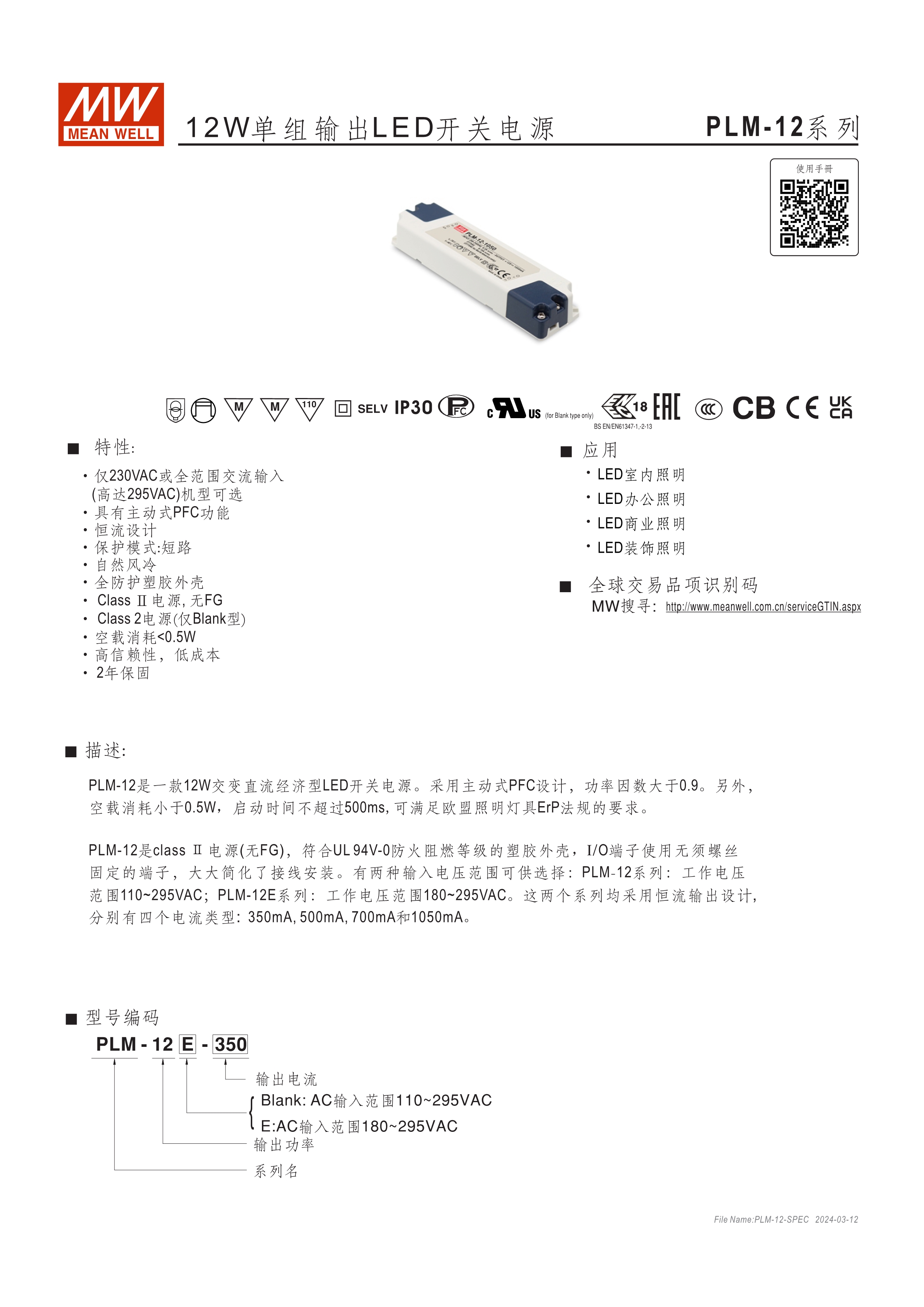 110~295VAC交流輸入 (E型:180~295VAC交流輸入) 內(nèi)建主動(dòng)式功率因子矯正功能 (active PFC) 塑料外殼,IP30防護(hù)等級(jí) Class II設(shè)計(jì),無FG 壓線式輸出/輸入端子臺(tái) 恒流設(shè)計(jì) 空載待機(jī)消耗瓦數(shù)<0.5W 適合于LED室內(nèi)照明相關(guān)應(yīng)用