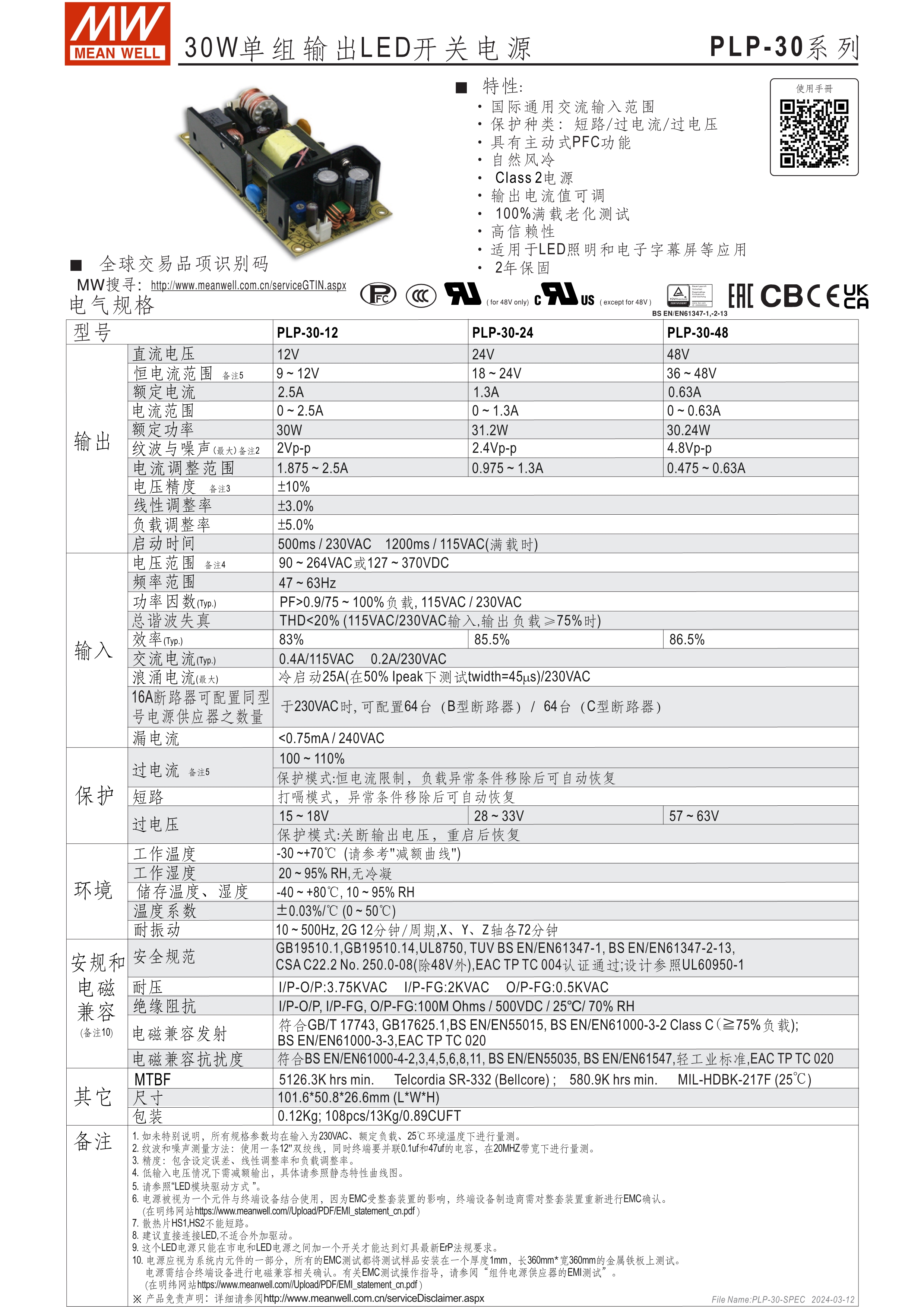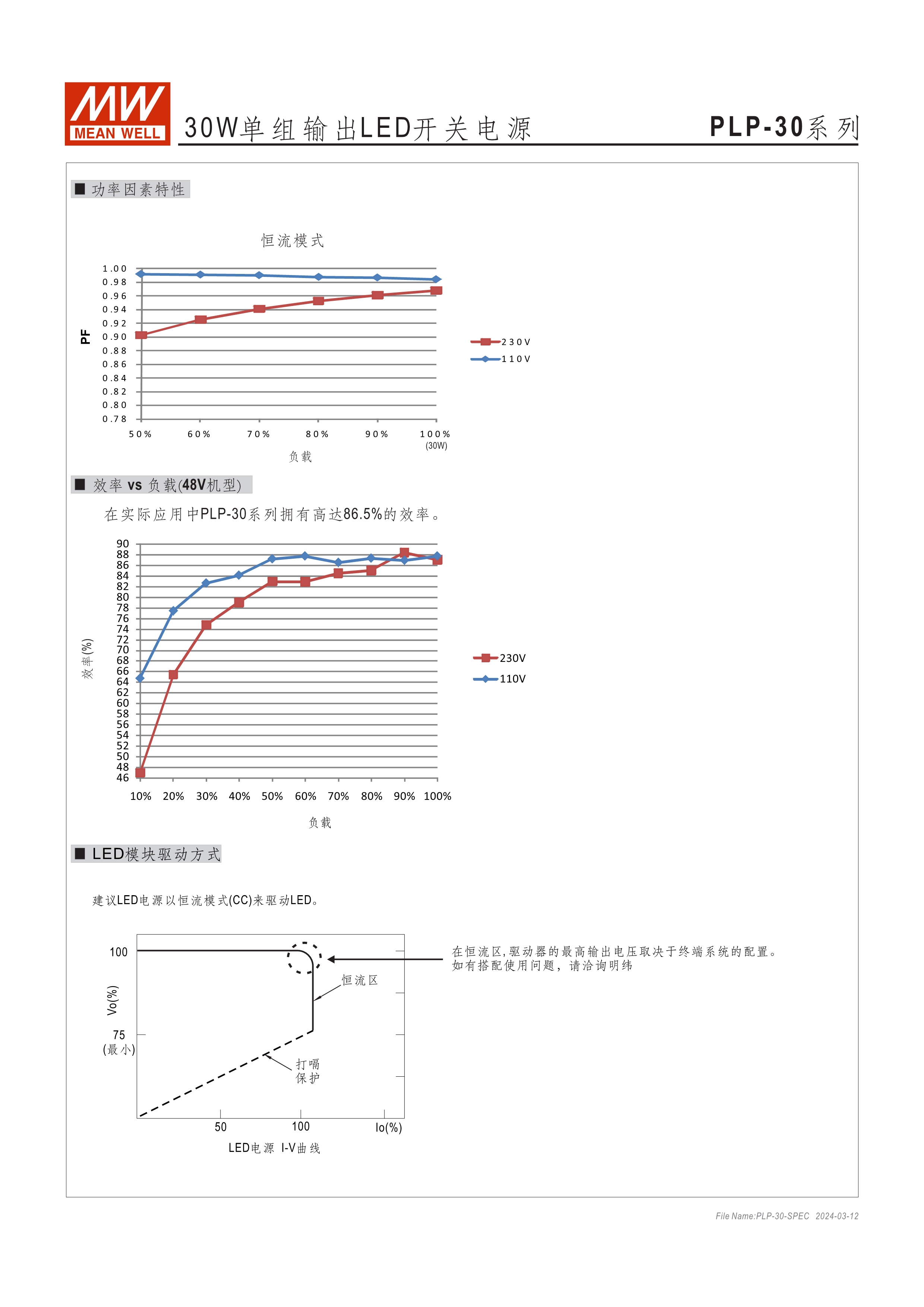 90~264VAC交流輸入, 內建主動式功率 因子矯正功能(active PFC) 適合內置于LED照明系統(tǒng)