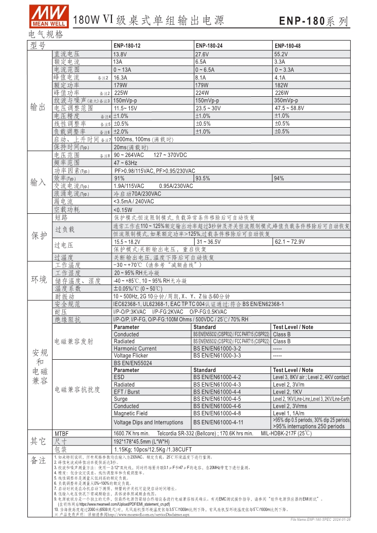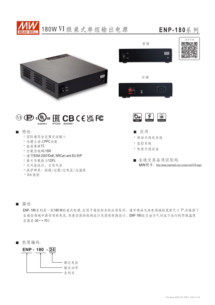 ENC:可編程充電器, ENP:Level VI電源供應(yīng)器 可透過SBP-001編程器設(shè)定充電電壓、電流、停充時間 NTC溫度補(bǔ)償功能 (ENC系列) 無風(fēng)扇設(shè)計(jì)、靜音 保護(hù)功能:短路、過壓、過溫度保護(hù)(ENC/ENP系列); 電池過低、過高、極性反接(僅ENC系列) 適用于鉛酸電池 3年保固