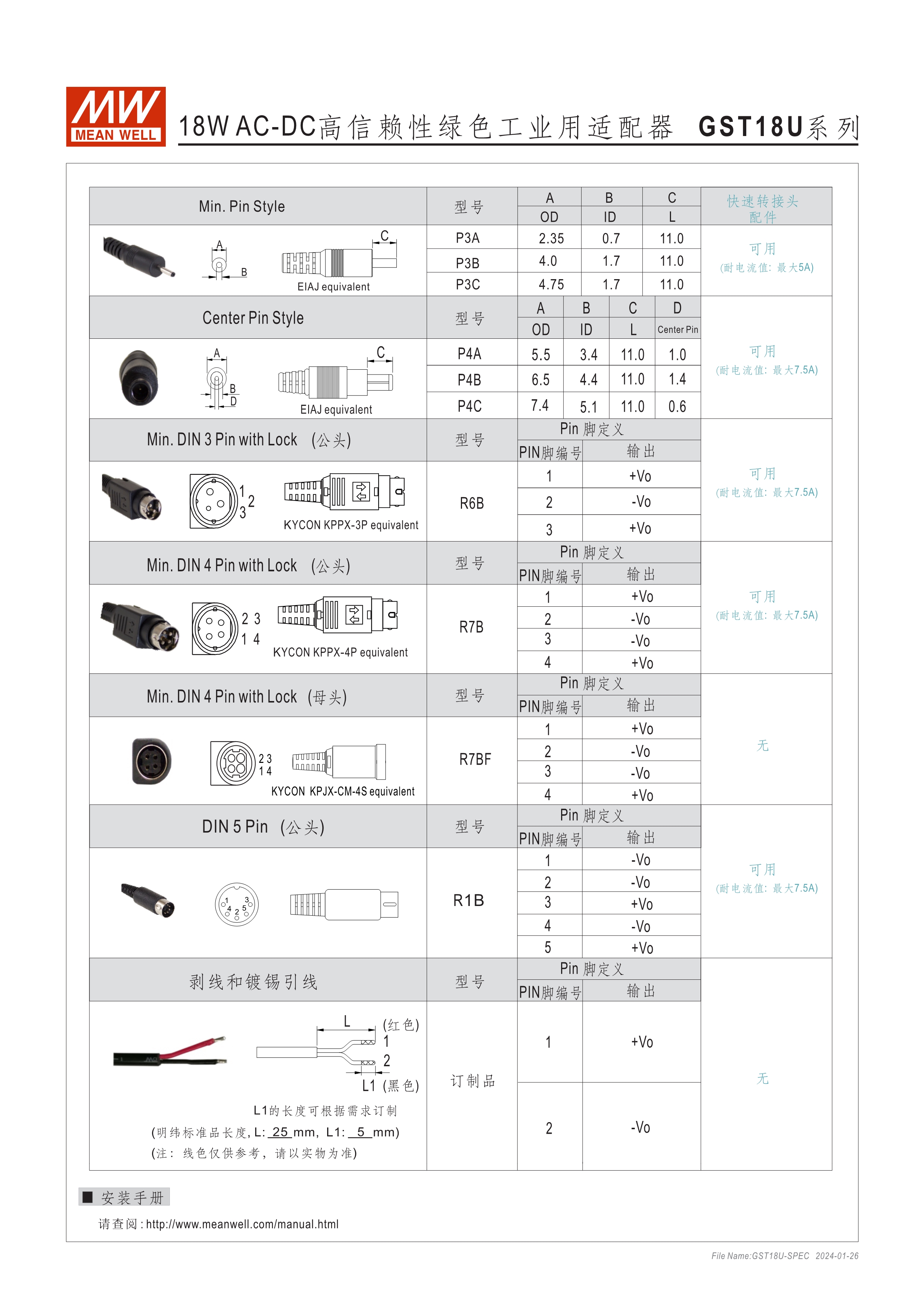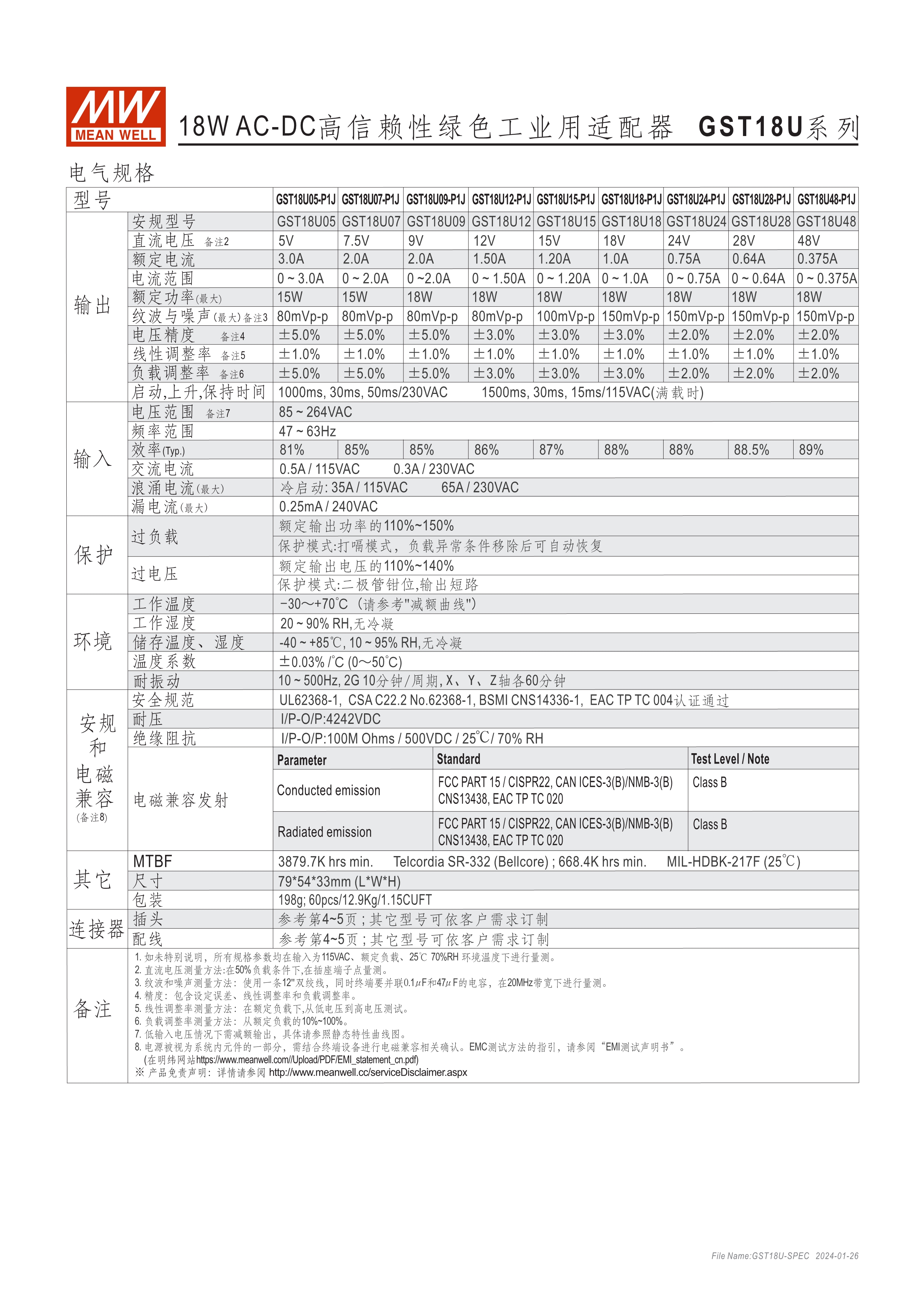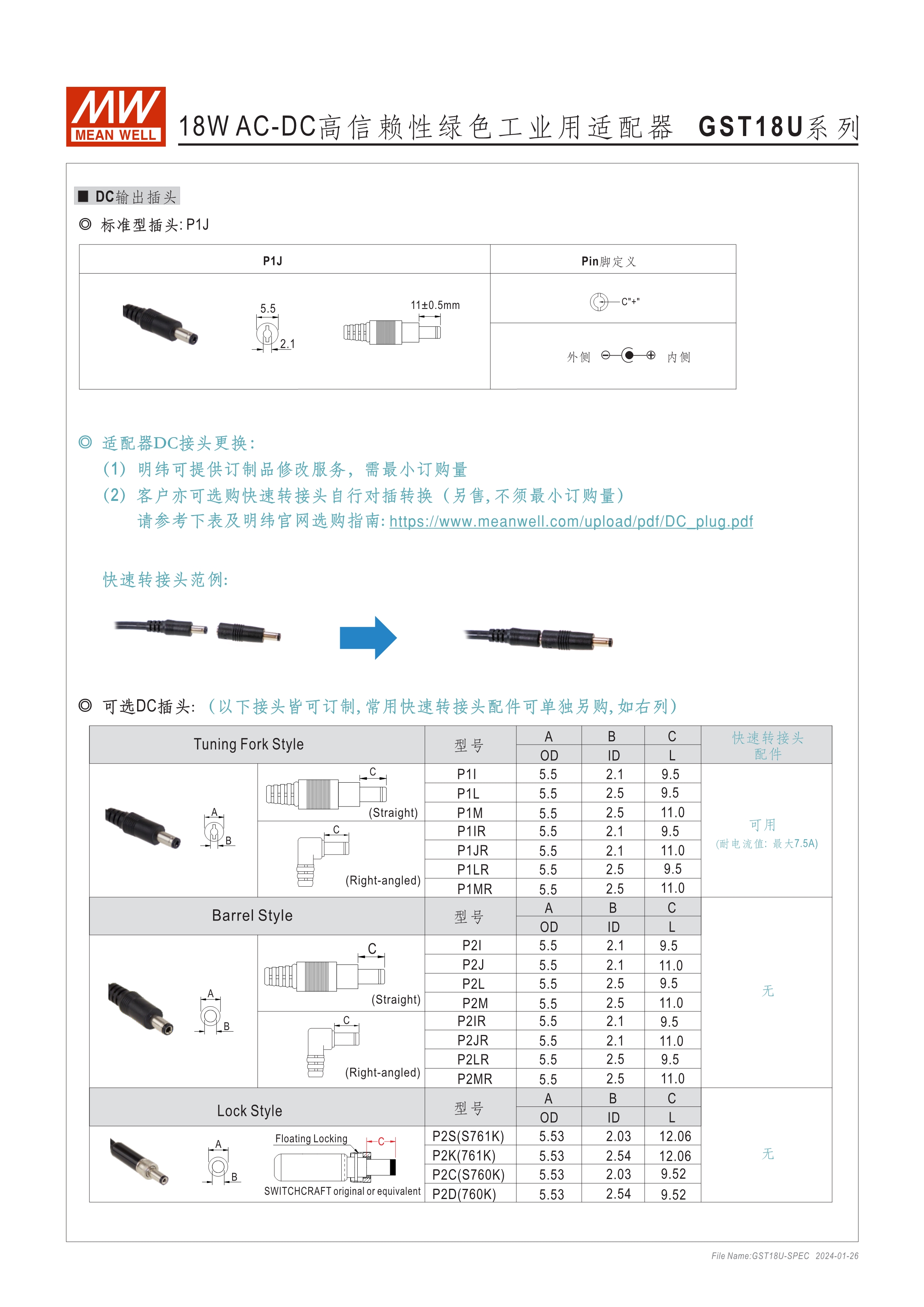 通過資通訊62368-1認證 90~264Vac輸入 空載損耗<0.075W~0.15W 能效等級Level VI 保護功能:短路、過載、過電壓 無風扇設計,工作溫度:-30~70℃ U型:2極美插,E型:2極歐插 多種DC輸出轉接頭可更換 3年保固