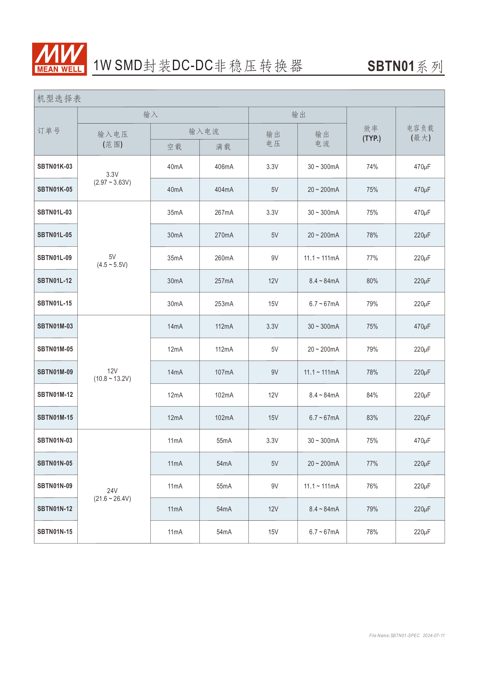 模塊型快選表 SMD型 擁有單組及雙組輸出機種