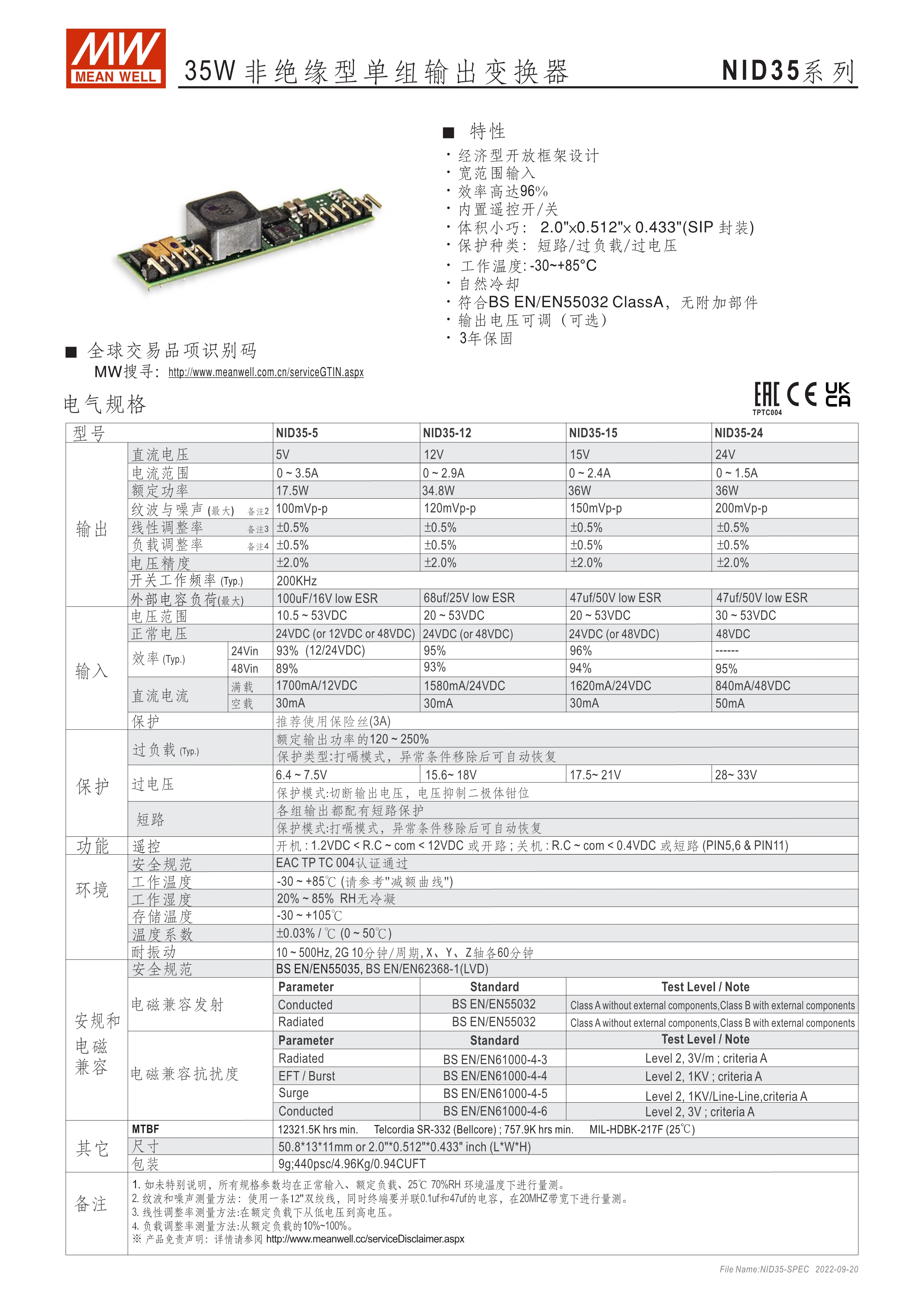 4:1 寬輸入范圍 輸入/輸出隔離:1~1.5KVAC (依機(jī)型) 內(nèi)建(remote ON/OFF control)功能 低價(jià), 高信賴性