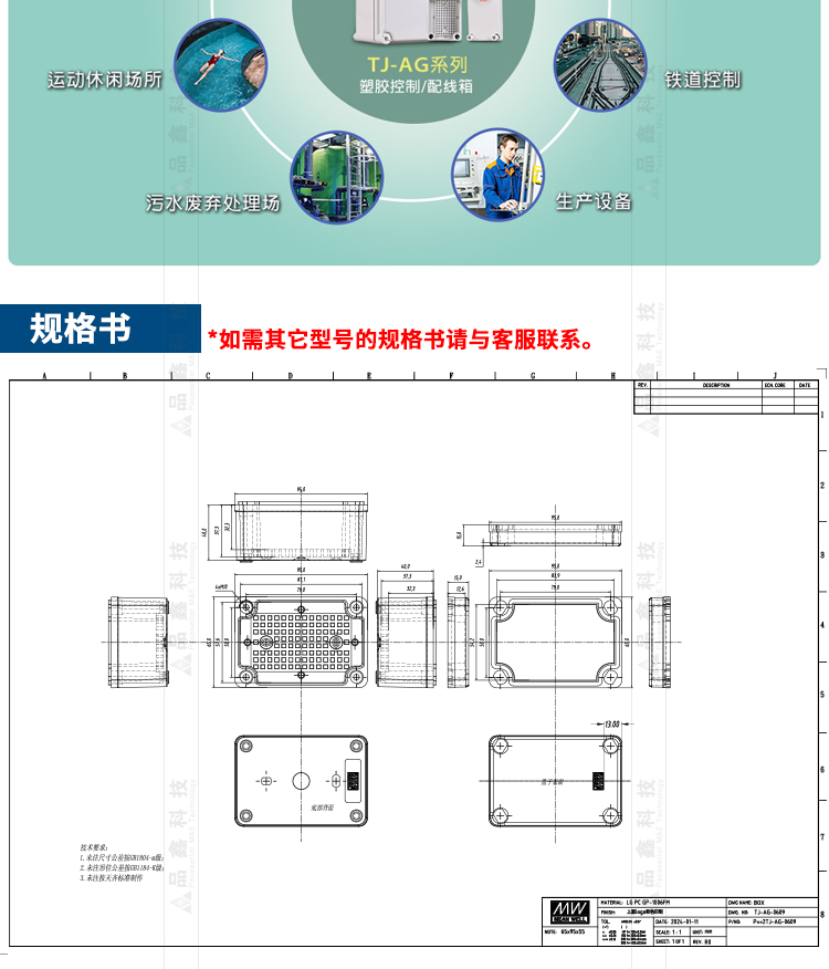 TJ-AG系列 明緯聯(lián)源精密塑料配線箱 IP66防水防塵配線控制箱 IK9