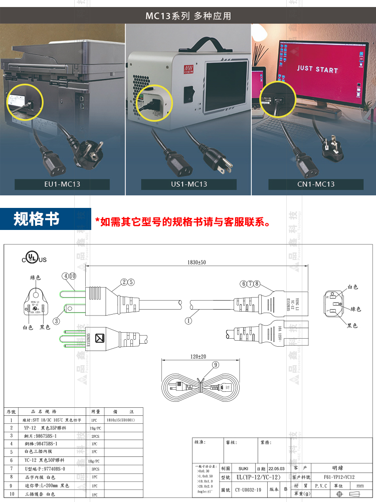 AC電源線 明緯電源 聯(lián)源精密 工控配件 電源線材線束